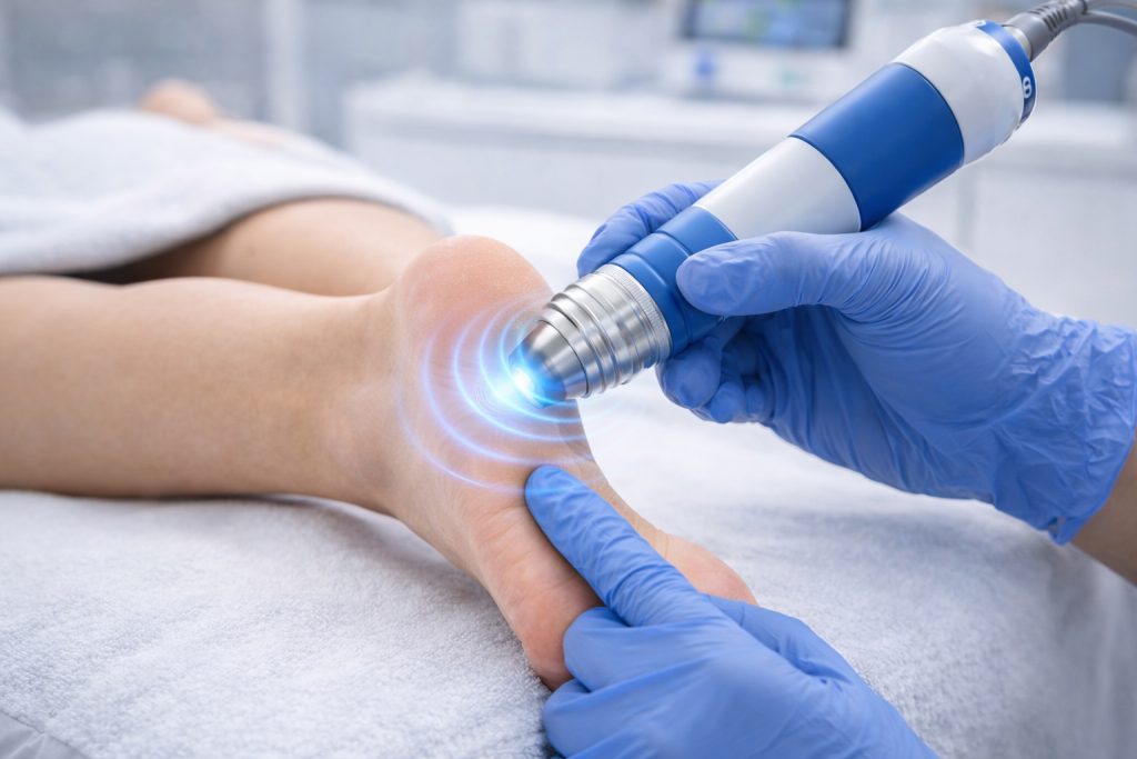 • Fersensporn und Plantarfasziitis: Stoßwellen lindern den Schmerz und fördern die Regeneration des betroffenen Gewebes.